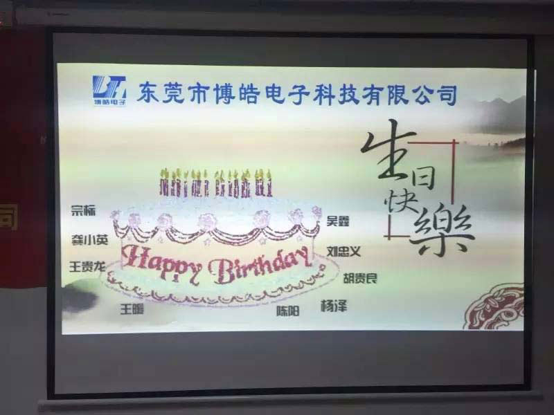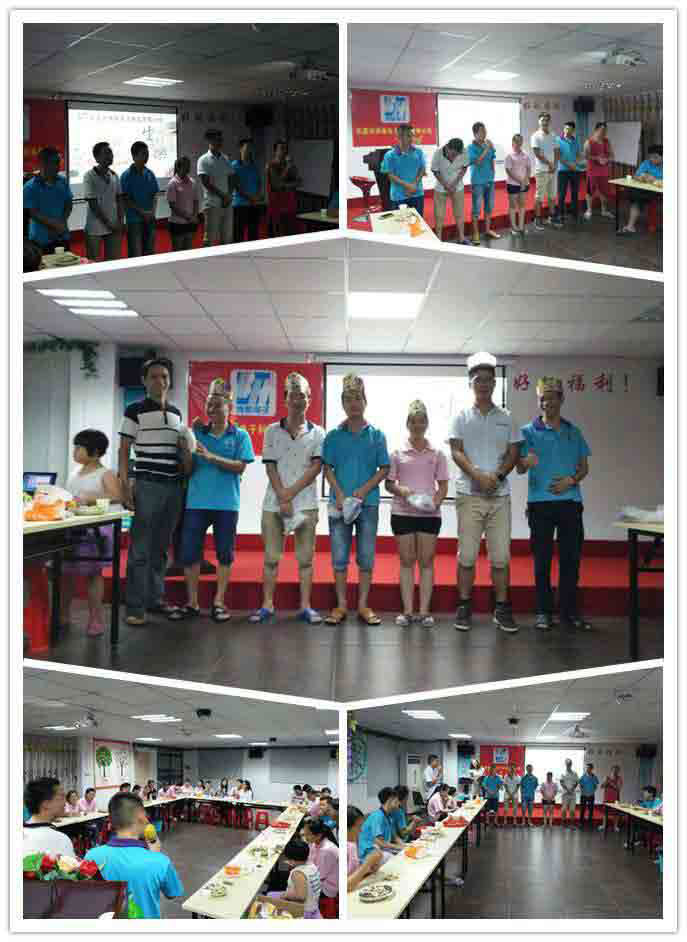 本次生日會壽星有7位,其中還有主管后勤的博皓大家長宗總。為了讓我們能夠在這個(gè)專業(yè)生產(chǎn)硅膠按鍵的工廠工作、生活,平常我們所吃的可口飯菜、我們所住的舒適寢室等等,這些都有他的影子。