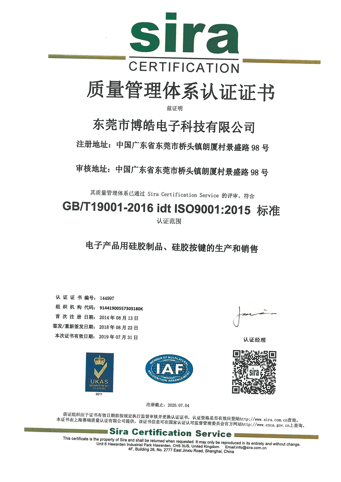 ISO9001:2015質(zhì)量管理體系認證中文證書