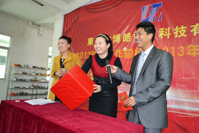 因2012年底生產(chǎn)訂單任務(wù)繁重,公司年會(huì)推遲到2013年開(kāi)工后召開(kāi)。在2013年2月24日,元宵節(jié)的下午,公司全體同仁歡聚一堂,在公司飯?zhí)谜匍_(kāi)了此次會(huì)議。