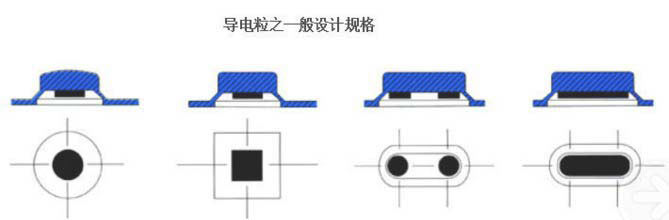 下面博皓硅膠制品廠給大家說(shuō)說(shuō)導(dǎo)電硅膠按鍵中導(dǎo)電粒的設(shè)計(jì)規(guī)格。通常根據(jù)形狀分為以下兩類: