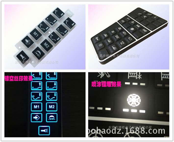 把硅膠按鍵表面字符做成透光不僅效果非常炫酷,而且能讓使用者在光線暗弱的情況下根據(jù)字符透光來(lái)識(shí)別按鍵進(jìn)行操作,現(xiàn)在很多的電子產(chǎn)品,大型儀器設(shè)備、軍工設(shè)備等上面的硅膠按鍵都要求有這個(gè)效果。硅膠按鍵的字符透光效果可以通過(guò)鏤空絲印和噴涂鐳雕兩種工藝來(lái)實(shí)現(xiàn),那么硅膠按鍵的鏤空絲印與噴涂鐳雕工藝有哪些不同?