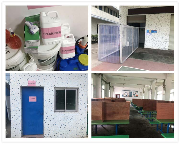 其次我們完善了廠區(qū)防疫設(shè)施設(shè)備,加強(qiáng)了廠區(qū)衛(wèi)生安全。公司配備了臨時(shí)隔離室和隔離留觀室,在進(jìn)入生產(chǎn)硅膠制品的車間入口設(shè)立了安全通道,紅外測(cè)溫被配備了口罩手套。飯?zhí)眠M(jìn)行了改造,每個(gè)位置采用了隔板確保兩人相隔一米。廠區(qū)包括員工宿舍都噴灑了84消毒液進(jìn)行消毒處理,飯?zhí)弥匦掠盟疀_洗干凈,垃圾桶則暫時(shí)遷移到廠門(mén)外。