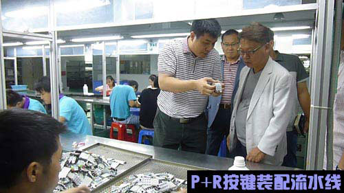 在生產(chǎn)現(xiàn)場,吳總為cisco領(lǐng)導(dǎo)講解P+R按鍵的裝配知識以及工藝生產(chǎn)難點。