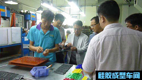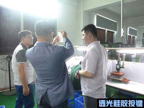 上圖為Cisco領(lǐng)導(dǎo)對我司生產(chǎn)的透光硅膠按鍵進(jìn)行了解。