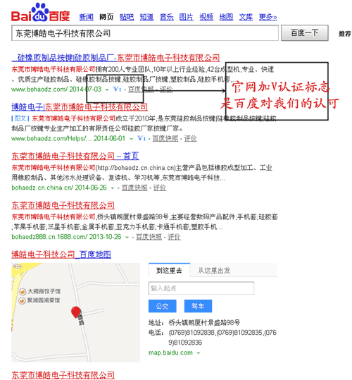 1、找到他們的官方網(wǎng)站,如:東莞市博皓電子科技有限公司的官方網(wǎng)站網(wǎng)址就是http://m.santabarbara-autobahn.com,網(wǎng)址后面后又一個大V,這個是百度對這家公司網(wǎng)站的一個認(rèn)證標(biāo)志。