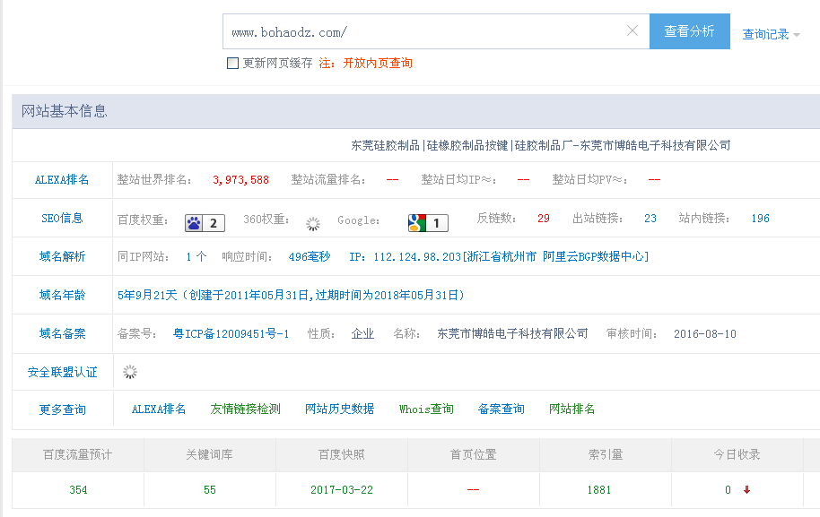 下面是小編今天博皓電子網(wǎng)站(m.santabarbara-autobahn.com)的站長(zhǎng)數(shù)據(jù)。