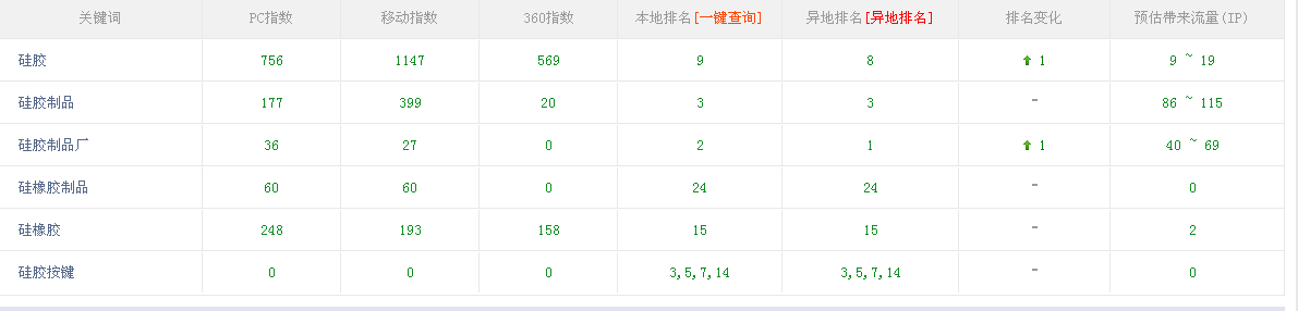但如果只是優(yōu)化“硅膠按鍵”對(duì)博皓網(wǎng)站是不夠的,網(wǎng)站排名有百度權(quán)重高低來進(jìn)行搜索引擎優(yōu)化關(guān)鍵因素,所以我們博皓還選擇“硅膠、硅膠制品、硅膠制品廠、硅橡膠制品、硅橡膠”,這些都是有百度指數(shù)的,優(yōu)化難度很高,不是一朝一夕可以優(yōu)化上的,靠的是持之以恒的堅(jiān)持執(zhí)行去完成。