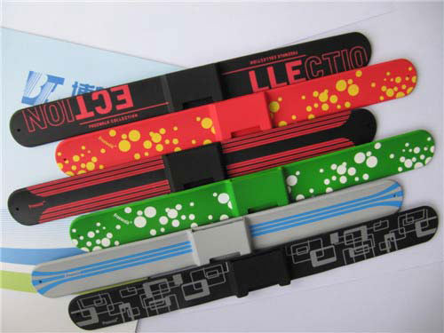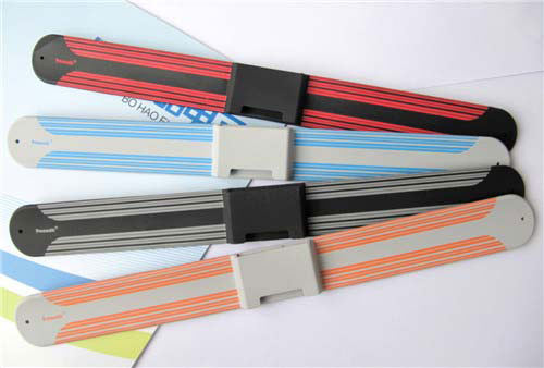 硅膠拍拍帶是近市場(chǎng)比較流行的一款運(yùn)動(dòng)型產(chǎn)品的附屬品,產(chǎn)品主要是運(yùn)用在電子手表,脈搏測(cè)試儀或者純屬裝飾品。這種產(chǎn)品因?yàn)轭伾容^多,經(jīng)過的各段的工藝流程比較復(fù)雜。而博皓電子在經(jīng)過不到4年的發(fā)展已經(jīng)擁有3個(gè)工廠的生產(chǎn)規(guī)模,目前擁有成型機(jī)器42臺(tái),生產(chǎn)需要的相應(yīng)絲印設(shè)備噴涂設(shè)備一應(yīng)俱全,并且每個(gè)工廠能維持在150人的生產(chǎn)力,所有的工藝均是在本廠內(nèi)部完成。