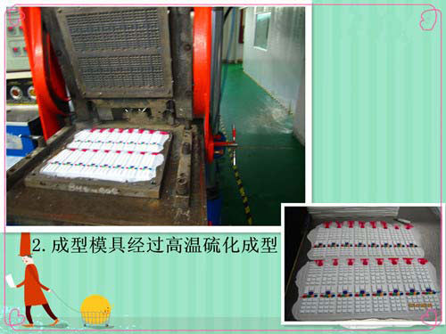 2.用已經(jīng)開好的硅膠模具進(jìn)行硅膠原材料的高溫高壓硫化成型,如圖: