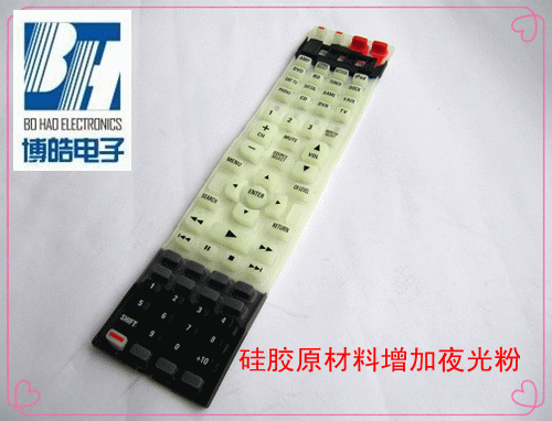 - 產(chǎn)品簡(jiǎn)介:夜光硅膠按鍵指在硅膠原料中加入了一定比例的熒光粉,使用硅膠按鍵能夠在黑暗的環(huán)境下發(fā)出夜光。使用者在晚上不開(kāi)燈光的情況下,可以通過(guò)按鍵表面的夜光效果可以比較找到遙控器的位置。