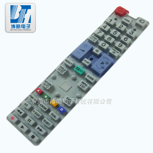 - 產(chǎn)品簡介:這是一款用于海爾液晶電視的硅膠遙控器按鍵,設計復雜,制作工序多,使用的硅膠原材料顏色較為豐富,主要用比較鮮艷的顏色來制作特殊按鍵,方便你在使用中更容易得心應手,另外這款按鍵還有一個特殊的地方,就是按鍵下加有黑粒導電,可以起到導電效果。