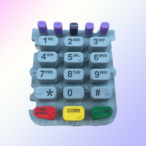- 本款POS機按鍵是IC卡POS機上的硅膠按鍵,采用二次成型,表面絲印+噴涂+滴膠的工藝。博皓電子為您提供省心定制服務(wù)!